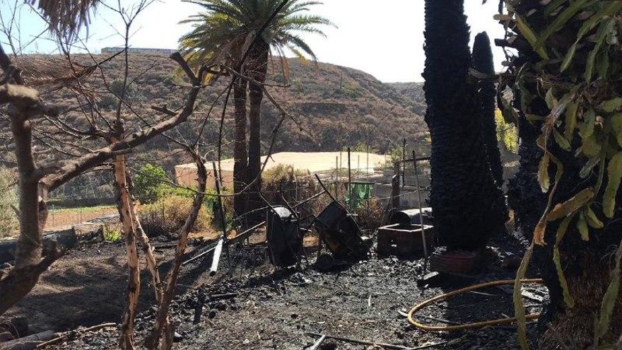 Un incendio agrícola ha sido declarado en Aguatona, Ingenio. Los bomberos del Parque de Arinaga están en estos momentos actuando en la zona, donde se han visto afectadas por el fuego varias cadenas de árboles, palmeras, tierra y algún cuarto de aperos.