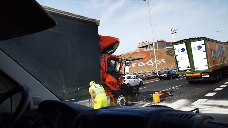 Un accidente de tráfico en el que se han visto involucrados tres camiones ha colapsado la autopista GC-1 en sentido Las Palmas de Gran Canaria.