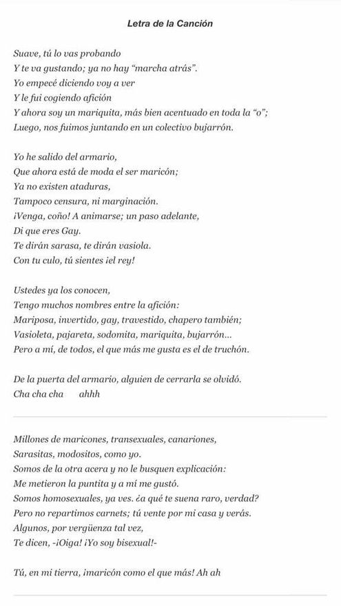 La Asociación LGBTI Algarabía, sumándose a la solicitud realizada por el concejal Florentino Guzmán, ha exigido a la Afilarmónica NiFú-NiFá la retirada de la letra de la canción Ya somos mayoría al entender que incita al rechazo a las personas por su orientación sexual e identidad de género.