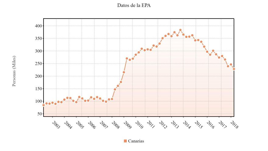 En la actualidad, según la EPA del primer trimestre de 2018, las islas tienen un porcentaje de parados respecto a la población activa del 20,62%. Hace algo más de nueve años, en el último trimestre del año 2008, ese nivel era del 20,99%.