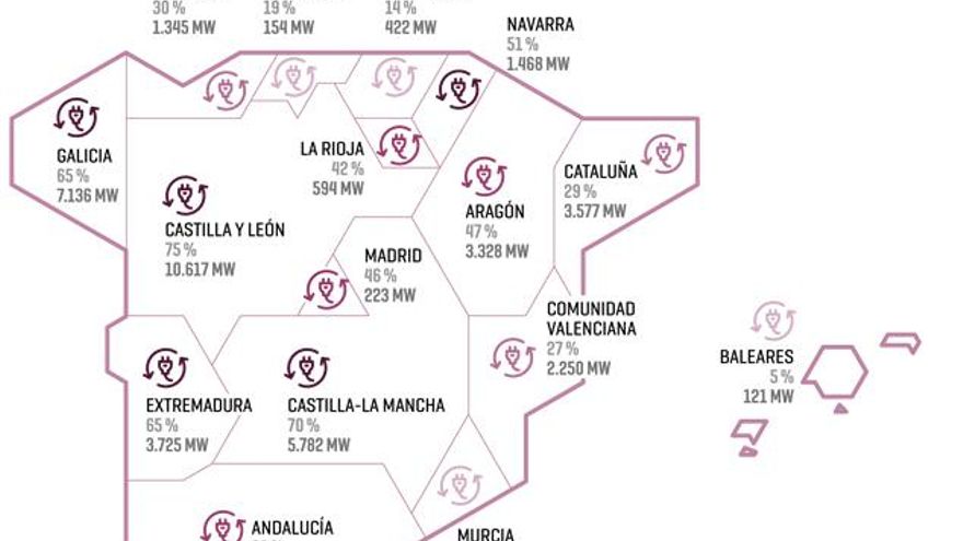 Tal y como se menciona en ese trabajo técnico, la generación eléctrica en Canarias con energías renovables, casi en exclusiva del viento y del sol, solo representa el 8% del total regional (702 GWh), lo que coloca a las islas en el penúltimo puesto del ranking español, con Baleares en el último lugar (con el 6%) y muy lejos, demasiado quizá, del promedio español, que es de casi el 39%. Ello es así incluso descontando la aportación que tienen a ese umbral relativo las energías hidráulicas, casi inexistentes en las islas (13,8 puntos que, descontados del índice general, dejarían aquel nivel en el 25,2%, o sea, 17,2 puntos más que el dato global de Canarias, en el 8%). La comunidad autónoma con registro más elevado es Castilla y León, donde el 73% de la electricidad generada procede de fuentes renovables. Así da gusto.