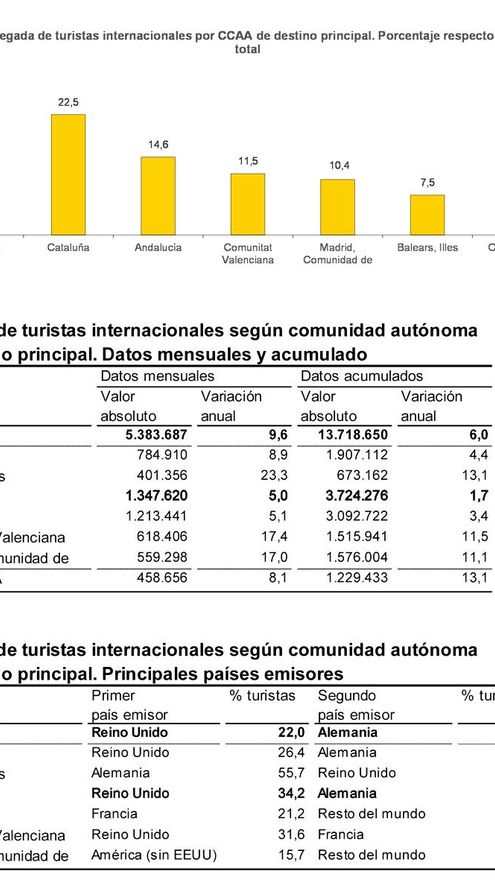 La llegada de turismo extranjero crece el 1,7% en el primer trimestre, cinco puntos menos que en enero-marzo de 2017
