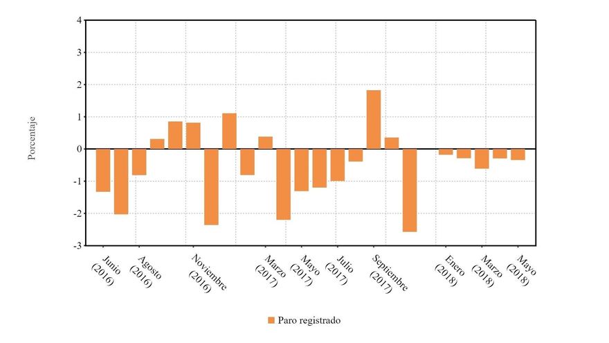 El mes de mayo de 2018 acaba de confirmar lo que ya se apreció en abril pasado y lo que puede convertirse en la tónica de este año; esto es, que la economía canaria ha variado su ritmo de creación de empleo neto y ya no crea tantos puestos de trabajo como lo hacía en los meses de más gloria en el ejercicio pasado.