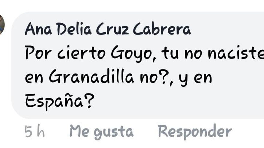 Cruz le repuso: “Ya con eso me respondiste!! Te las das de gran defensor del pueblo y no naciste en España; todavía recuerdo cuando llegaste a Granadilla, tenías 14 años, y no pasa nada por no ser de aquí pero no vengas dándotelas de granadillero, PORQUE NO LO ERES”.