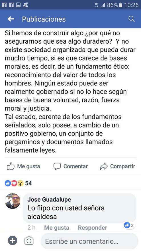 Y el segundo párrafo que copia literalmente del autor británico reza así: “Ningún estado puede ser realmente gobernado si no lo hace según bases de buena voluntad, razón, fuerza moral y justicia. Tal estado, carente de los fundamentos señalados, solo posee, a cambio de un positivo gobierno, un conjunto de pergaminos y documentos llamados falsamente leyes”.
