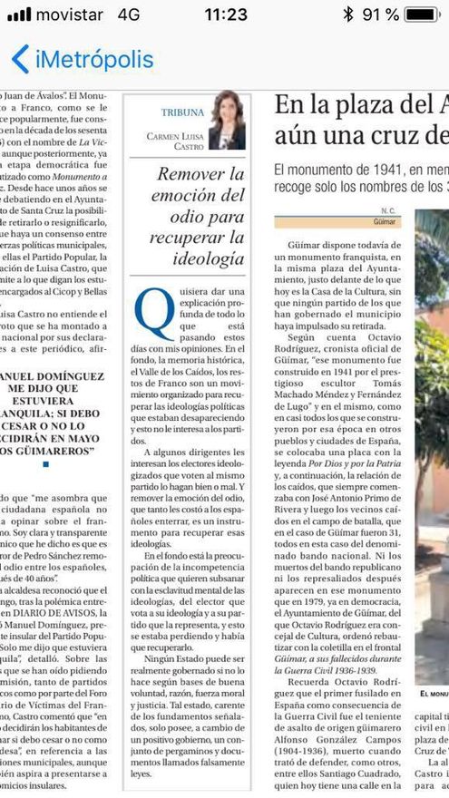 La alcaldesa publicó este artículo en Diario de Avisos y además en Facebook, aunque ya no aparece ese post en su muro, con el fin de “dar una explicación profunda de todo lo que está pasando todos estos días con mis opiniones”.