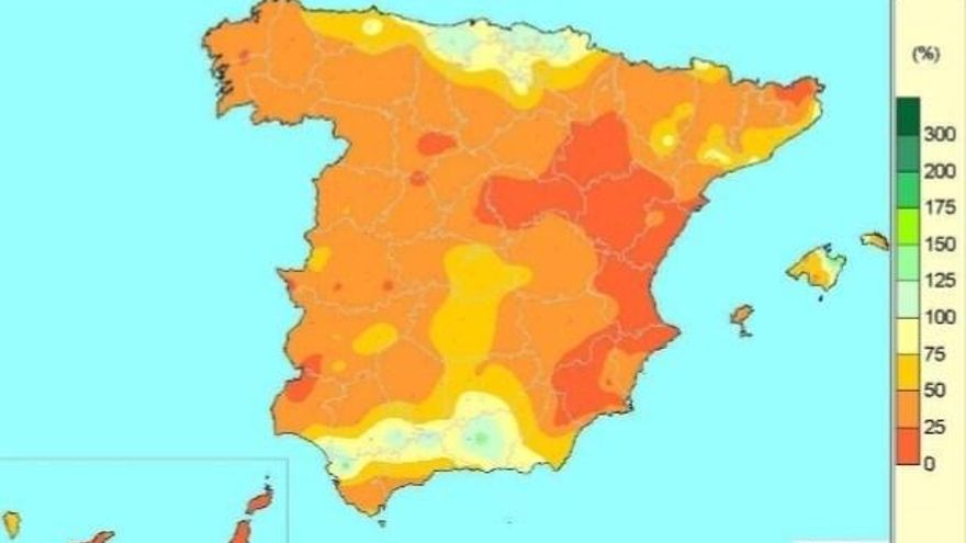 Quitando Cantabria y el País Vasco, el norte de Mallorca y a lo largo del valle del Guadalquivir, las cantidades acumuladas se encuentran por debajo de su valor normal en toda la Península y los archipiélagos, según datos de la Agencia Estatal de Meteorología (Aemet).