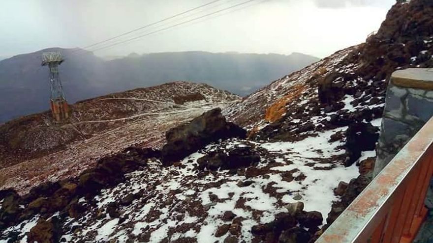 El granizo pintó de blanco la cima del estratovolcán integrado en el parque nacional tinerfeño, como se observa en las imágenes servidas en redes sociales por la mencionada entidad.