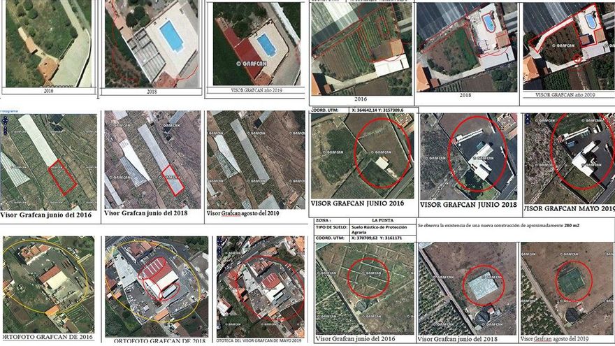 Santiago Pérez explica que, desde hace meses, la Gerencia viene analizando una gran cantidad de información gracias a un convenio con la empresa pública Cartográfica de Canarias (Grafcan), que permite detectar de forma automatizada los cambios producidos en el territorio comparando las fotografías aéreas de un mismo entorno en diferentes años. Los datos obtenidos en esta primera campaña de revisión muestran que en los últimos cuatro años se han registrado 266 infracciones, de las cuales 205 se han cometido en suelo rústico de protección agraria.