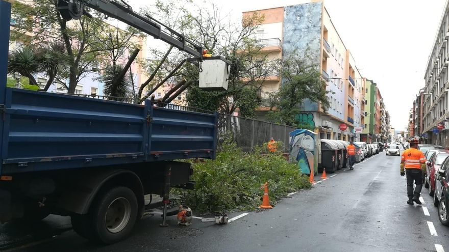 El concejal también indicó que hubo caídas de árboles en el municipio como consecuencia del granizo en la zona de Guamasa, de alguna farola, también a consecuencia del viento en la zona de Valle de Guerra, y de un árbol grande en la calle Heraclio Sánchez.