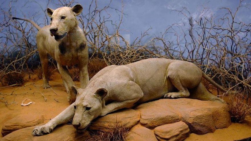 El suceso más siniestro de la construcción del Tren Lunático tuvo lugar a orillas del Río Tsavo. En marzo de 1898 el teniente coronel John Henry Patterson llegó al país con la misión de supervisar la construcción del puente que debía salvar el Tsavo. Y lo que debía ser un mero trámite de ingeniería se convirtió en un verdadero infierno. Dicen que ese año se combinaron dos circunstancias que lanzaron a dos leones a una frenética cacería de seres humanos: una terrible sequía que alejó a los grandes herbívoros y un brote de peste bovina que acabó con buena parte de los búfalos de la región. Estos dos leones de Tsavo mataron a 35 personas aunque las crónicas d la época, en un alarde de sensacionalismo hablaron de 135 devorados. Los leones fueron cazados y los trabajos prosiguieron. Los cuerpos disecados de los dos felinos se encuentran en el Museo Field de Chicago.