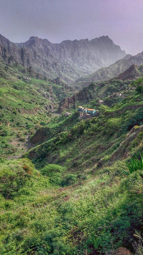 El eje que explica la identidad de Santo Antao es la altura. Lo vertical domina por completo el paisaje condicionando todo lo demás. Si vas sólo un día no podrás, por ejemplo hacer el sendero que va desde Ponta do Sol a Cruzinhas, un camino enlosado de piedra volcánica literalmente excavado en los acantilados y que tiene uno de sus puntos paradigmáticos en el precioso pueblo de Fontainhas. En estos valles verdes (que recuerdan mucho a Canarias desde el punto de vista natural) aparecen terrazas de cultivo y casas de piedra con techo de paja. Valles como el de Ribeira de Paúl más parecido a los campos que se encuentran a 4.000 kilómetros en Brasil que los que apenas distan 1.000 en Senegal. Trópico puro. La cara opuesta de la moneda es el sur y el oeste. Desde el Pico da Cruz hay otro sendero que desciende hacia Porto Novo a través de Morocos, un paisaje de piedras desnudas y viejos volcanes extintos en los que el agua es cosa de ciencia ficción.