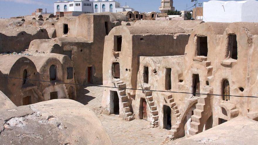LAS CIUDADES DE BARRO DEL SUR.- Matmatat, Medenine, Tataouine y Hadada son antiguas ciudades bereberes del sur del país dignas de verse por su imponente arquitectura de barro. Pero la gente que baja hasta aquí, ya a dos pasos de las arenas del desierto, viene en busca de los escenarios del Planeta Tatooine, hogar de la familia Lars, los tíos de Luke Skywalker. Las viejas ciudadelas de adobe se convirtieron en el barrio de esclavos donde pasó su infancia Anakin Skywalker; las casas del puerto espacial de Mos Espa o la granja de los Lars, que aún puede visitarse en Medenine, una curiosa población de casas subterráneas.