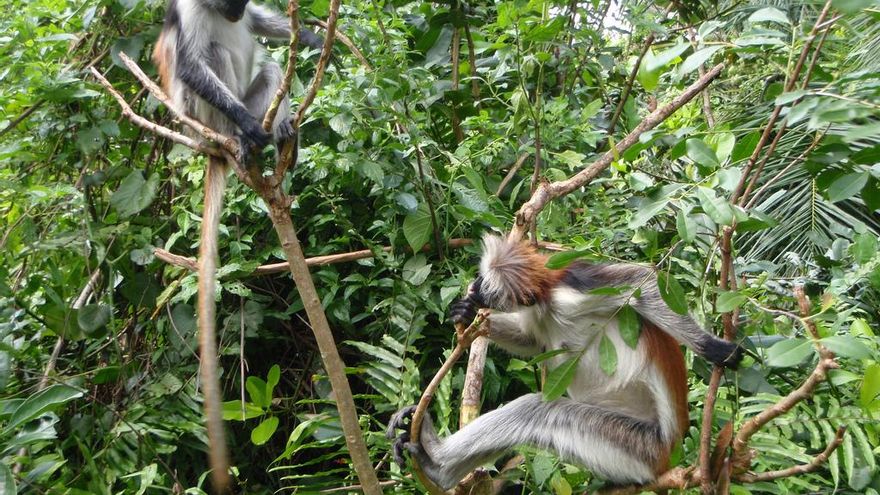 En busca de los monos colobos rojos.- El Colobo Rojo es una rareza zoológica exclusiva de la isla de Zanzíbar que hoy ha quedado recluido a los bosques de Jozani, último refugio de una especie que se encuentra en extremo peligro de extinción. Hoy, la Reserva Natural de Jozani se ha convertido en una de las atracciones turísticas más importantes de la isla. Un bosque de más de más de 2.500 hectáreas que cuenta, además de grandes manchas de bosque nativo, una de las mejores reservas de manglar del Índico africano. Y como guinda del pastel está la posibilidad de ver al Colobo Rojo, que se mueve entre la espesura en grandes grupos que pueden superar los 50 individuos. Las visitas al parque se realzan a través de senderos guiados por agentes locales.