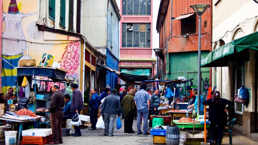 Un paseo por el ‘Plan’ no dice gran cosa, la verdad. Aquí, a pocos metros sobre el nivel del Pacífico, la ciudad es como cualquier otra de estas latitudes: con sus catedrales de antes de ayer, sus palacios, sus edificios administrativos. Sólo en las inmediaciones del Muelle Prat, uno puede asomarse al mar sin la barrera que supone la línea férrea que corre en paralelo a la costa. El viejo Mercado Municipal, a pocos metros del muelle, ofrece esas estampas condensada en olores de cualquier ciudad portuaria del mundo con puestos dónde los pescaderos se afanan en dejar listo un género tan fresco que parece que va a saltar de un momento a otro.