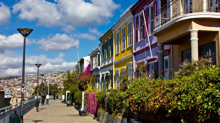 La nota discordante a tanta globalización nos llega laderas arriba. En los cerros, como se dicen por estos lares: 42 en total que se fueron llenando de casas a lo largo de los siglos, primero por puro esnobismo y luego por las estrecheces de un ‘Plan’ rodeado por montañas por todas partes menos por una que se llama Océano Pacífico. Casi nada. Por esnobismo, decíamos, porque los primeros cerros, más allá de los ocupados por las antiguas defensas de la época de la Colonia, fueron asiento de comerciantes ingleses, alemanes y españoles que construyeron pequeños palacetes de madera con amplios jardines para alejarse un poco del trajín de la ciudad. Casonas que aún pueden verse en lugares como el Cerro Alegre, patria chica de los ingleses que se instalaron en la ciudad o el vecino Cerro Concepción, con impresionantes miradores sobre un mar que, paradójicamente, es más cercano desde las alturas que a ras de agua, allá en ‘El Plan’.