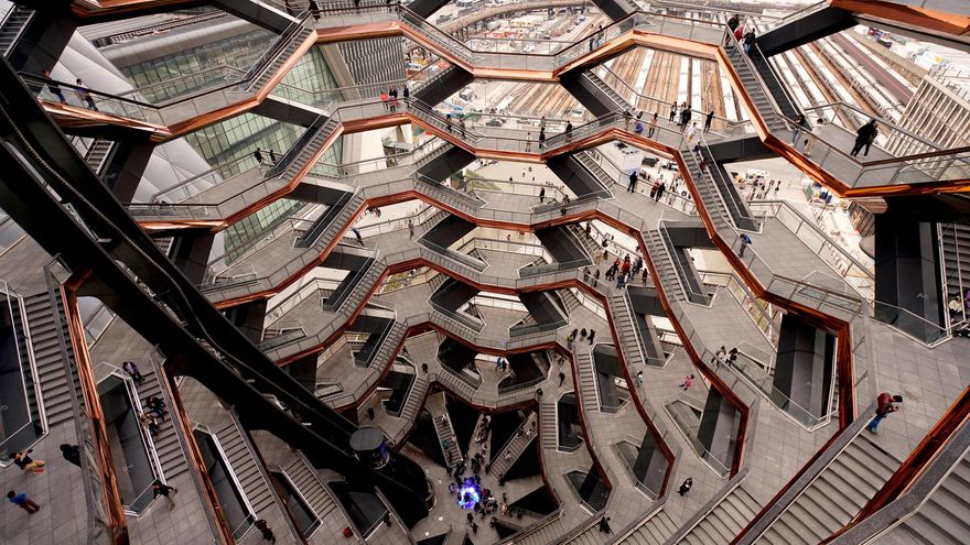 Ya desde las alturas se percibe que este es un lugar especial; algo así como un paréntesis dentro del callejero de esta ciudad dominada por el hormigón, el acero y el cristal. Las alturas que forman el paisaje de la ciudad quedan lejos. Si tomas el camino del Highline en la 34, pasarás junto a los últimos gigantes. El complejo Hudson Yards es uno de esos ejemplos paradigmáticos de nueva arquitectura que mira siempre hacia arriba: un lugar dónde los rascacielos de oficinas y apartamentos de lujo se mezclan con los mercados selectos, los restaurantes de lujo, los espacios escénicos (el espectacular Shed) y los centros de negocios. The Vessel The Vessel es otra de esas extravagancias de las que hablábamos antes. Esta torre de escaleras adorna desde hace algunos años la plaza de Hudson Yards y se ha convertido en otro de los cientos de iconos que adornan esta ciudad fascinante. Este nuevo hito marca la frontera entre Midtown y Chelsea. Al sur de la 30, el paisaje urbano cambia por completo: como si fuera otra ciudad.