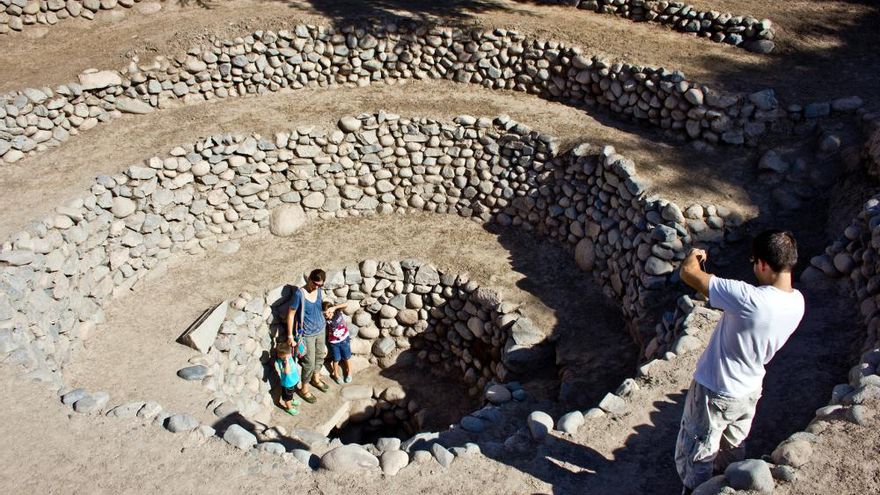 En un lugar como éste, todo gira en torno al agua. Las ramblas de Nazca están secas la mayor parte del año; pero el valle es de un verde intenso. La mayor parte de la gente que llega hasta aquí se sube a un avión, sobrevuela el lugar para ver las famosas líneas y se va. Y se pierden el por qué de ese lienzo de figuras, rectas, trapecios y triángulos que se hicieron para ser vistos desde las alturas. Y sólo basta un pequeño paseo por las vegas que rodean la pequeña ciudad para empezar a entender las bases de una cultura que hunde sus raíces en la época en la que Roma construía su Coliseo. En torno al 100 después de Cristo, los nasca empezaron a construir una compleja red de pozos, acequias y albercas para sacar a la superficie las ricas aguas subterráneas del valle. Y esa fue la base de una civilización que floreció por más de medio milenio y que creó sorprendentes manifestaciones culturales únicas en el mundo.