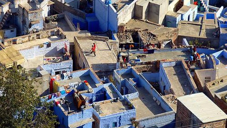 Cuentan que al principio, las casas de los brahmanes se pintaron de azul para distinguirlas de las del resto de mortales. Así azules color cielo como la mismísima piel del Señor Krishna, un color que simboliza, en el complicado universo hindú, la verdad, la curación y la paz espiritual. Por eso se escogió como distintivo de las casas de los miembros de la casta sacerdotal, la más importante de las clases sociales del férreo sistema social indio. Pero con el tiempo, se fueron pintando de este color más y más casas hasta convertir a Jodhpur en la ciudad azul de La India. Una ciudad que, incomprensiblemente, pasa bastante inadvertida en el inmenso universo indio, pero que es uno de los centros patrimoniales y culturales más intensos del país.