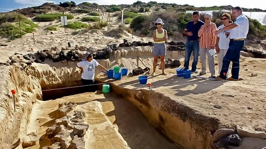 Un sendero circular (que forma parte de la ruta de Gran Recorrido que recorre todo el Archipiélago) nos ayudará a explorar en apenas dos horas todos los rincones de la isla. Todo empieza y acaba en El Puertito. Aquí tendrá el viajero el primer enamoramiento. Frente a las casas de los pescadores las lavas entraron en el mar creando brazos caprichosos que encerraron el Atlántico siempre inquieto en lagunillas de aguas tranquilas y transparentes –y fondos de arena clara- ideales para ponerse las gafas y el tubo . A dos pasos se encuentra la Playa de La Calera (o de Las Conchas) el gran arenal de la isla y también ideal para chapuzones recurrentes. Pero hay mucho más que playa. A la vista hay un pequeño horno de cal y viejas Salinas que servían para sacarle al mar esa sal imprescindible para la salazón de pescados –míticas jareas majoreras-. Pero hay piedras aún más antiguas. En la misma playa se han localizadoviejas estructuras de piedra que se han asociado a restos cerámicos y metálicos romanos. Los expertos aseguran que aquí hubo una factoría de fabricación de tintes púrpuras a partir de la cocción y procesamiento de moluscos marinos (el Stramonita haemastoma ). Los arqueólogos han encontrado cerámicas, anzuelos, muros y los restos de más de 70.000 de estos caracoles marinos. Es uno de los yacimientos arqueológicos más importantes de Canarias pese a ser modesto en comparación con otros. Pero es interesante de ver ya que es el lugar que cambió el paradigma de la colonización humana de las islas.