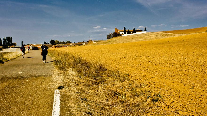 Por eso merece la pena avanzar 26,7 kilómetros desde Carrión de los Condes hasta Terradillos de los Templarios, ya casi en la línea que marca la separación entre Palencia y León. Jornada de campos llanos desprovistos de sombra y con escasas posibilidades de cargar agua. Por eso hay que salir de Carrión de los Condes bien provistos, ya que más de la mitad del camino (16,7 kilómetros) transcurren por el trazado de la antigua Calzada Romana, lejos de cualquier pueblo. Viajar Ahora recomienda salir muy temprano para evitar los rigores de las primeras horas de la tarde.