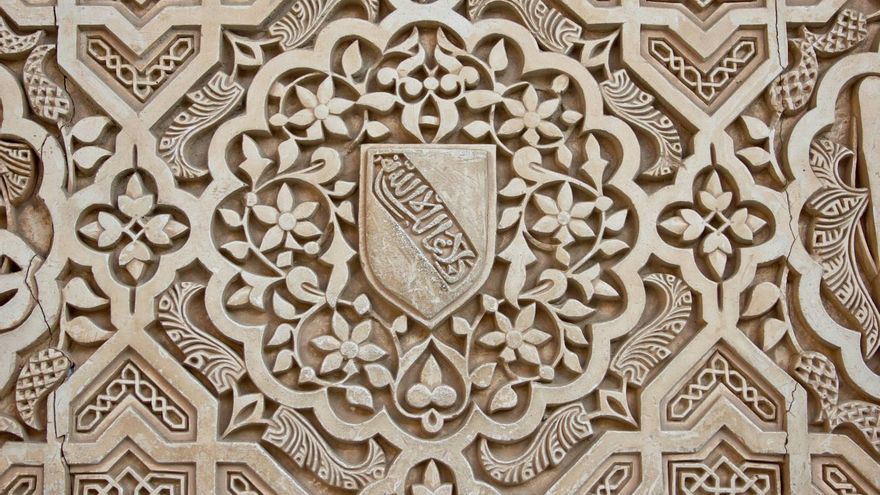El viajero inquieto ira y vendrá viendo las filigranas de los azulejos y el delicado trazo de las letras esculpidas en yeso. Y el más avezado o el más observador verá que una frase se repite una y otra vez en todos y cada uno de los rincones del palacio . Así, a lo bruto, esa frase recurrente, que se repite miles de veces junto a los diferentes nombres de Dios, pasajes del Corán y poemas, suena ‘wa lā gāliba illā-llāh’, que en la parla de los cristianos quiere decir ‘Sólo Dios es Vencedor’. Los ‘Caligramas’, o epigrafía como elemento de decoración arquitectónica, son los verdaderos protagonistas de La Alhambra. Según los estudiosos, hay más de 10.000 inscripciones. Por todos lados. Una cantidad tan brutal que convierten a La Alhambra en un verdadero libro.