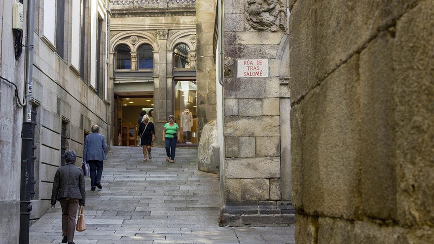 Otro obligado es darle la vuelta a la catedral y pararse a ver las plazas que rodean al enorme edificio: Platerías; Quintana y Azabachería. Desde cada una de ellas, la catedral nos ofrece una nueva perspectiva y multitud de detalles; algunos grandes como la Torre Berenguela o las diferentes puertas –Platerías; Puerta Santa; Puerta Azabachería-. Otros pequeños, como los elementos románicos que afloran de entre la cobertura barroca que cubrió casi todo el exterior en el siglo XVIII. Desde las plazas surgen las callejuelas que recorren toda la trama de la ciudad medieval. A nosotros nos encantan las Rúa do Vilar yRúa Nova. Calles con soportales que mueren en la Plaza do Toural que esconden pequeñas maravillas como la románica Iglesia de Santa María Salomé (Rúa Nova, 31), la tienda de cerámica de Sargadelos tienda de cerámica de Sargadelos (Rúa Nova, 16) y esas hileras de casas de piedra con amplios balcones acristalados que tanto nos gustan. Muy cerca de esta pequeña plaza se encuentra el Mercado de Abastos Mercado de Abastos (Rúa Ameás, sn) un buen lugar para comprar productos gallegos de primerísima calidad y tomar unos vinos.