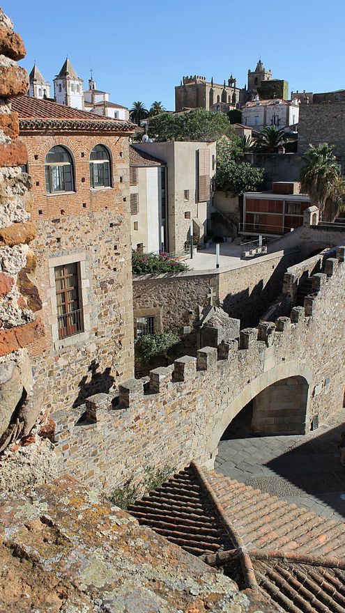 Torres, torres y más torres. Entramos en la vieja Cáceres por el Arco de la Estrella (obra de Manuel de Lara y Churriguera) y nos topamos con un laberinto de callejuelas repletas de enormes palacios coronados por grandes torres. Casas solariegas que exhiben blasones de lo más granado de la antigua nobleza española de ambos lados del Atlántico. El nombre que más sorprende es el de la Casa de los Moctezuma (Plaza Conde de Canilleros, 1; Tel: (+34) 927 005 400), palacio renacentista de los descendientes de una de las hijas del último ‘Gran Orador’ (como se autoproclamaban los emperadores aztecas) de la gran Tenochtitlán. La casona, una de las más grandes del casco histórico, hoy es sede del Archivo Provincial y puede visitarse. Hay palacios y viejas torres por todos lados. Las grandes familias rivalizaban entre sí construyendo estos palacios fortificados que en Cáceres suman hasta 25. Muchos de ellos pueden visitarse.