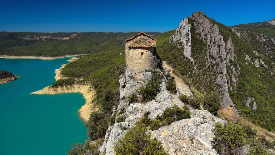 Pero más allá de las líneas que, según quien las lea, separan o unen a las gentes, este lugar es uno de los paisajes naturales más bonitos, salvajes e intensos de España. Un lugar de naturaleza potente y encuadres fotográficos de infarto (algunas paredes superan los 600 metros de altura). Un lugar ideal para ir a caminar un par de horas y, de paso, andar y desandar en una y otra ribera descubriendo una riqueza que trasciende lo natural. El eje de este paseo es la ruta pedestre de poco más de ocho kilómetros que median entre el parquin de La Masieta (extremo norte de la ruta y en la orilla catalana –hay que reservar el aparcamiento con antelación-) y el Albergue de Montfalcó (extremo sur y ya en territorio aragonés). Ocho kilómetros alucinantes que incluyen puentes colgantes, un buen tramo literalmente excavado en la roca, pasarelas colgadas del abismo (las famosas pasarelas de Montfalcó) y vistas brutales: algo así como una mezcla de la Garganta del Cares, entre León y Asturias, y el Caminito del Rey, en Málaga.