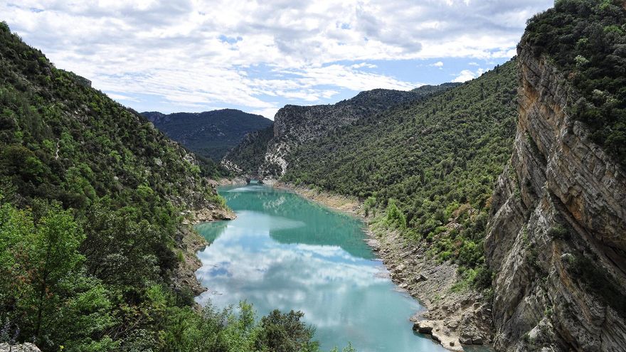 El Río Noguera Ribagorzana fluye hacia el sur desde las alturas pirenaicas (bebe, por ejemplo, de las nieves del mismísimo Aneto) en busca un Ebro que por estas alturas ya corre bastante al sur dando vueltas y contravueltas más pendiente ya de su llegada a las aguas del Mediterráneo. Pero mucho antes de eso, los torrentes se encuentran con la barrera natural de la Sierra del Montsec. Una especie de muralla que corre de este a oeste con alturas aún destacadas y porte que recuerda que la gran cordillera está cerca. El agua tuvo toda la paciencia del mundo para abrirse paso entre las piedras y los cantiles y con la ventaja que dan los muchos años, fue excavando un desfiladero de paredes tan verticales que más parece tajo de cuchillo que cañón de río. El Congost, que quiere decir desfiladero en catalán, hoy no sólo sirve para que pase el Noguera Ribagorzana; también sirve de límites entre las provincias de Huesca, al oeste, y Lleida (al este). Es decir, marca el límite entre Aragón y Catalunya.