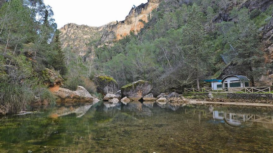 EL NACIMIENTO DEL RÍO SEGURA.- Los caprichos de la geografía hicieron que los puntos de partida de dos de los más importantes ríos peninsulares se situaran a pocos kilómetros de distancia. Ya vimos la fuente del Guadalquivir, que después de una pequeña vuelta se derrama hacia el oeste en busca del Atlántico. El Río Segura hace el camino contrario y muere en el Mediterráneo tras un recorrido de poco más de 325 kilómetros (su primo cercano supera los 650). Para acceder al surtidor del Segura debemos tomar la A-317 desde Hornos y ascender hasta los páramos surrealistas de Pontones, una pequeña meseta de campos de cereal desolados que contrastan con los bosques que suben desde las orillas del Tranco. El río surge de una poza que mana agua gélida en un entorno casi mágico. No es de extrañar que en las inmediaciones se hayan localizado numerosos abrigos con pinturas rupestres.