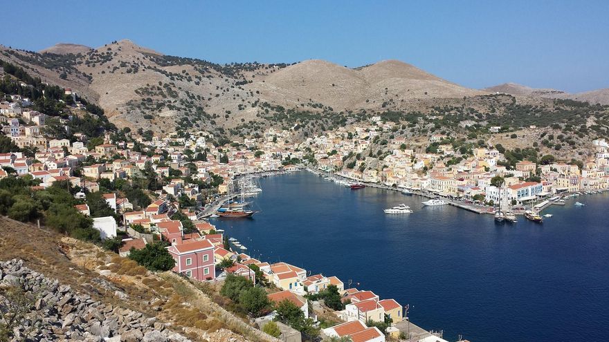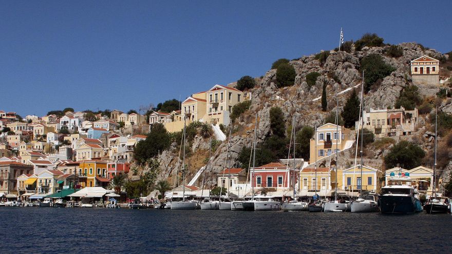 De las más de 2.000 islas que forman el mosaico de los mares griegos, poco más de una veintena son frecuentadas por los viajeros. La inmensa mayoría quedan fuera de los circuitos mayoritarias y permanecen casi como cápsulas en el tiempo. Casi guardadas como un tesoro y a resguardo de las hordas de turistas que bajan y suben de los cruceros para consumir un poco del paraíso griego. El Dodecaneso es un archipiélago formado por 163 islas que se extienden frente a las costas de Turquía en el Egeo Sur. Su nombre alude a sus doce islas principales, entre las que se encuentran ‘peñascos célebres como Rodas (que ejerce de capital) y Patmos. Symi es una de esas doce islas en las que hay mucho que ver; una pequeña islita de apenas 58 kilómetros cuadrados que, pese a estar junto a las costas turcas, quedó incorporada a Grecia en la ‘énosis’ (unión) después de una azarosa historia que incluye, griegos, romanos, bizantinos, cruzados de la Orden Hospitalaria, otomanos, italianos e, incluso, judíos sefardíes.