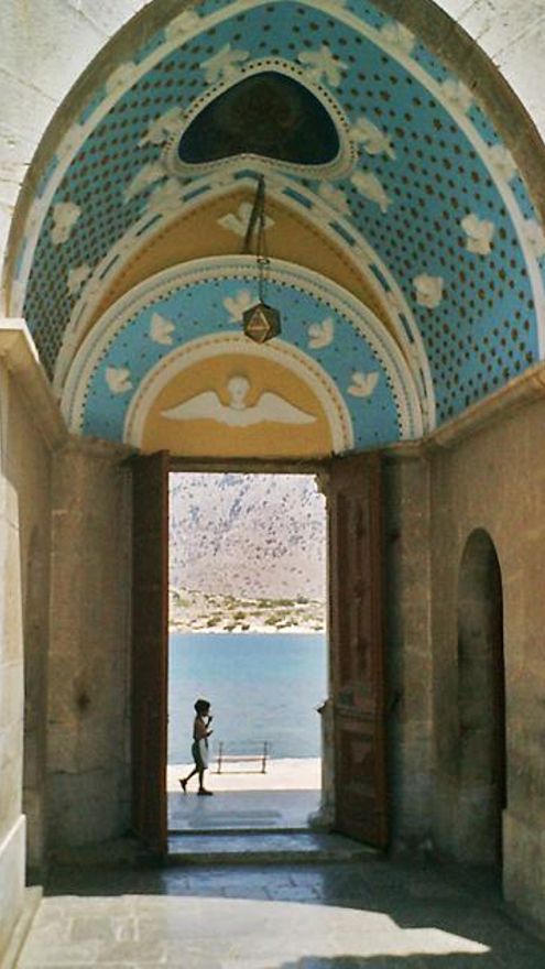 VISITAR LA ISLA .- En los alrededores de la capital de la isla hay algunos atractivos que se pueden visitar a pie. Un corto paseo desde el centro hacia el norte nos conduce a la Bahía de Emporios (bordeando la costa y visitando La Anunciación o subiendo hasta la Capilla de San Pedro –hay más iglesias que gente acá-). En el lugar hay dos pequeñas playas separadas por la antigua aldea de pescadores de Nimborios reconvertida en centro turístico (hay varios alojamientos y restaurantes) y un entorno de rocas desoladas en las que sólo ‘crecen’ las pequeñas ermitas que se encuentran diseminadas por toda la isla. En sentido contrario, también se puede caminar hacia la espectacular bahía de Pedi después de visitar los muros del antiguo castillo cruzado que domina las alturas de la ciudad.