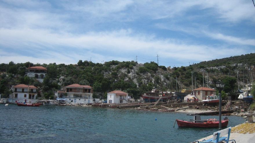 MAMMA MIA EN LA COSTA ESTE DE PELIÓN .- El Pelión mira hacia el Egeo a través de una costa muy recortada y rocosa que atesora grandes playas, pequeñas calas y cuevas submarinas. Quizás el tramo más salvaje es el que media entre Veneto y Chorefto. Las carreteras aquí se limitan a pequeñas pistas forestales y esos kalderimia excavados, literalmente, en las faldas de la montaña. El bosque llega hasta la misma orilla del mar creando parajes de gran belleza. Más al sur, los pequeños pueblos se suceden y aparecen algunas grandes playas como Agios Iovannis o Papa Nero. Muy cerca de aquí se encuentra Ntamouchari, un pequeño pueblecito encantador que se hizo famoso por servir de plató privilegiado para Mamma Mía. Imagínate lo que te vas a encontrar.