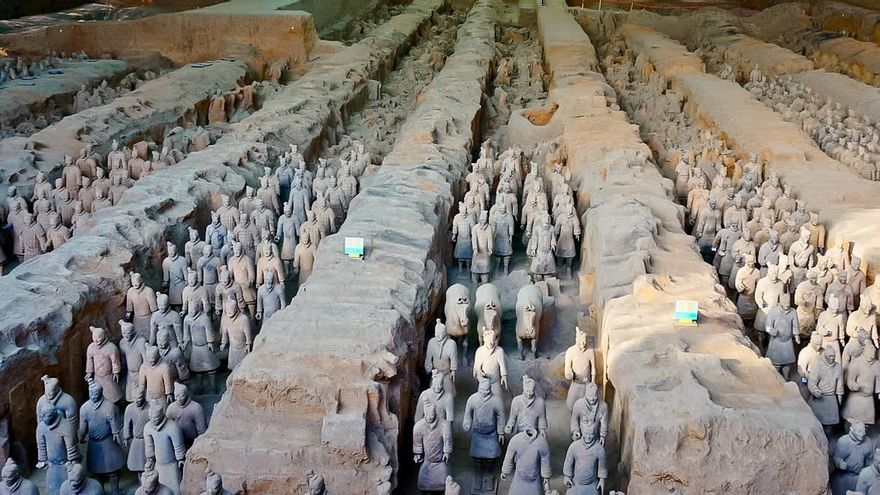 Uno de los máximos atractivos de la gigantesca tumba del emperador Liu Qui, unificador de China y responsable, entre otros logros de la construcción de la Gran Muralla China, es que su palacio subterráneo aún no ha sido visto por ojo humano alguno veintidós siglos después de su construcción. La enorme pirámide escalonada de 76 metros sigue cubierta de tierra protegida por un sistema de drenajes que evitan su erosión. Los arqueólogos aseguran que cualquier intervención externa pondría en riesgo el yacimiento y los restos de las personas que, según parece, se inmolaron con el emperador tras su muerte. Otros aseguran que a lo que temen las autoridades chinas es a una compleja red de trampas, ballestas listas para disparar y ríos de mercurio preparados para recibir a los intrusos. Pero aún así, una visita a la ciudad de Xi’an debe estar en el debe de cualquier viajero que se acerque a China. Liu Qui se hizo enterrar con un impresionante ejército de terracota formado por unas 8.000 figuras a tamaño real que debía guardar al soberano tras su muerte. Y caballos, carros de bronce, acróbatas, músicos… Los guerreros de Xi’an seguirán siendo la principal atracción del mausoleo mientras nadie dé el primer paso para sacar a la luz lo que debe ser uno de los ajuares funerarios más fastuosos del mundo.