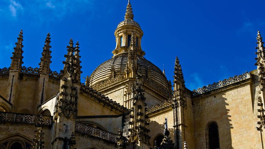 La Plaza Mayor, como en otras ciudades castellanas, es el corazón de la vieja Segovia y asiento de sus principales instituciones de gobierno espiritual y terrenal. El Ayuntamiento comparte espacio con la impresionante Catedral (Dirección: Plaza Mayor sn; Tel: (+34) 921 462 205; Horario: del 1 de octubre al 30 de marzo LD 9.30 – 17.30 y del 1 de abril al 30 de septiembre LD 9.30 – 18.30), una de las joyas del gótico español que, por su belleza, recibe el nombre de ‘la Dama de las catedrales’. Enumerar los tesoros artísticos que encierra este magno templo sería interminable pero en la visita no deben faltar ni el claustro (uno de los más delicados del país) ni la posibilidad de subir a la torre y disfrutar de impresionantes vistas sobre la ciudad y, al mismo tiempo, descubrir las gárgolas que adornan los muros del edificio. Muy cerca de la Plaza Mayor, el viajero con inquietudes históricas no puede pasar por alto la Iglesia de San Miguel Arcángel (Dirección: C/ Infanta Isabel, 1) una sencilla parroquia de estilo gótico en cuyo atrio se proclamó a Isabel la Católica como reina de Castilla el 13 de diciembre de 1474.