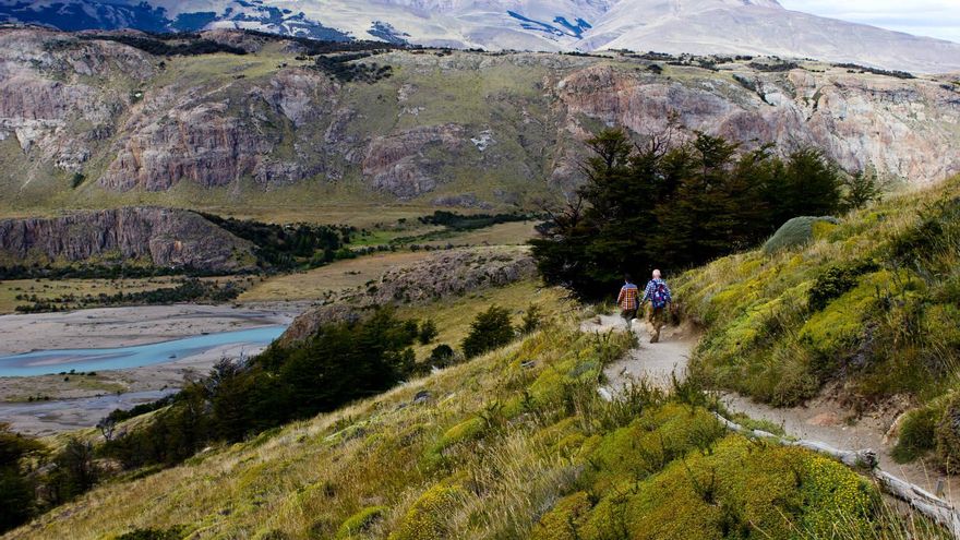 La capital argentina del Trekking. Con este título honorífico se conoce al pequeño pueblo patagónico de El Chaltén, una población surgida hace apenas unas décadas (se fundó en 1985) a los pies del Cerro Fitz Roy, una aguja de piedra que se eleva hasta los 3.405 metros sobre el nivel del mar para coronar una pequeña sierra de montañas y espectaculares circos glaciares que, casa año, atraen a miles de amantes del senderismo. A 214 kilómetros de la localidad turística de El Calafate (puerta de entrada del espectacular Glaciar Perito Moreno), El Chaltén se ha convertido en una excursión clásica para los que visitan el Parque Nacional Los Glaciares y se alojan en la localidad vecina. No es mala opción. El paseo incluye transitar un pequeño tramo de la mítica Ruta 40 (esa carretera que recorre el espinazo montañoso del país desde el Estrecho de Magallanes hasta la frontera con Bolivia más de 5.400 kilómetros después) y conocer, aunque sea en un leve trazo, la grandiosidad de los paisajes patagónicos. Un lugar único. Especial. Un escenario de tintes épicos donde el hombre parece un invitado de paso. Pero lo ideal es pasar aquí varios días y explorar a fondo la impresionante red de senderos que, desde este pueblo de alta montaña, se internan a los pies de los cerros en busca de lagunas, glaciares y aristas.