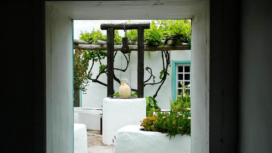 Y se olvida fácilmente el viajero, como diría el admirado José Saramago, de que sólo a un par de kilómetros proliferan los hoteles, los bloques de apartamentos y los restaurantes de comida rápida, porque callejeando entre ensoñaciones del pasado el paseo terminó en un patio blanco, muy blanco, donde hay un pequeño pozo con el brocal albo y parras verdes que cuelgan de los balcones. Y camina por trochas de picón negro viendo las casitas blancas con puertas verdes y las palmeras que surgen de la tierra quemada. Entonces se agradece que todo haya seguido igual. Que las gentes del lugar sigan sin hacer mucho caso a lo que sucede en la costa y que Teguise siga siendo Teguise.