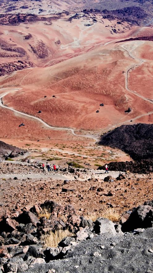 Km 9,6. La Rambleta. De aquí parte el Sendero Telesforo Bravo que sube directamente hasta la cima. Si hemos sido rápidos, aún no habrá empezado a amanecer. Sólo restan 700 metros; pero son los más difíciles. El camino es extremadamente empinado y estar rondando los 3.700 metros de altitud es algo que se nota. Y mucho. Nos cuesta encadenar más de quince o veinte pasos. A la falta de oxígeno hay que añadir el intenso olor a azufre que desprenden las fumarolas de un volcán que no está muerto. Sólo duerme. Bajo nuestros pies. La visión del cráter es impresionante. Sólo resta cubrir la media circunferencia que median entre la llegada al cuenco sulfuroso y la cima. El sol se asoma sobre las montañas de Gran Canaria y a nuestras espaldas, a la vez que la sombra triangular de la montaña se proyecta en el horizonte, podemos ver La Palma, El Hierro y La Gomera. Estamos cansados; pero ha merecido la pena. Mucho.