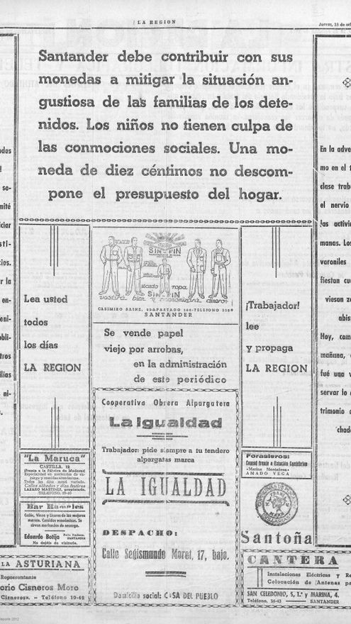 Poco se ha escrito sobre el desarrollo que la llamada revolución de octubre de 1934 tuvo en Cantabria, empalidecida tal vez por los tremendos acontecimientos que se produjeron al tiempo en la región vecina de Asturias.