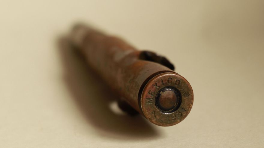 Si la observamos detenidamente comprobamos que la visión del proyectil aún nos puede dar más claves. En su base vemos que está datada: una fecha y un país. México, 1931. Hasta aquí los signos externos. Luego se abren otros caminos. Uno de ellos nos adentra en una vía histórica más o menos abordable: el motivo por el que armamento de fabricación mexicana llega a España alrededor de una fecha, 1931, en la que en este país se instaura la II República.