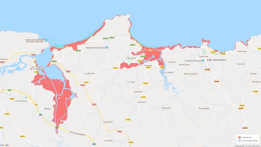 Oyambre y San Vicente de la Barquera se verán gravemente afectados. Con una amplia franja de costa y zona de marisma el municipio está en zona de riesgo, como lo está también todo el litoral hasta Comillas.
