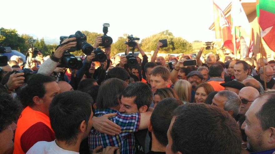 Posteriormente, entre gritos de 'Aupa Rafa' se fue fundiendo en emotivos abrazos con sus familiares, amigos, compañeros sindicalistas y dirigentes políticos, entre los que se encontraba el coordinador general de EH Bildu, Arnaldo Otegi, acompañado de otros históricos de la izquierda abertzale como Rufi Etxeberria, Tasio Erkizia, Pablo Gorostiaga, José Luis Elkoro e Iñigo Iruin, entre otros.