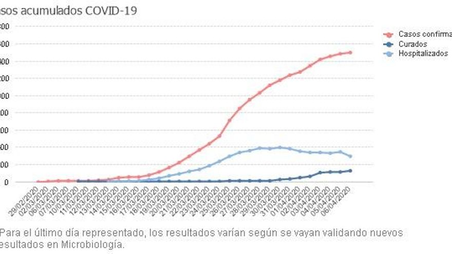 La Consejería de Sanidad contabiliza un total de 1.500 casos de coronavirus, de los que 1.287 permanecen activos, cifra inferior a la registrada ayer por primera vez desde el inicio de la pandemia. Del total de casos activos, 302 permanecen ingresados en los hospitales cántabros, 38 menos que ayer (40 en la Unidad de Cuidados Intensivos) y, el resto, 985, en cuarentena domiciliaria, según los datos proporcionados al Ministerio de Sanidad a las 21:00 horas de este lunes.