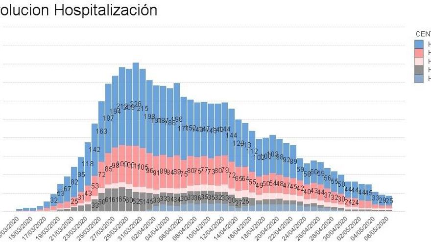 La distribución de las personas ingresadas en los centros hospitalarios es la siguiente: 25 en el Hospital Universitario Marqués de Valdecilla (3 en la Unidad de Cuidados Intensivos); 8 en el Hospital Comarcal de Sierrallana; 5 en el Hospital Tres Mares y 3 en el Hospital de Laredo.