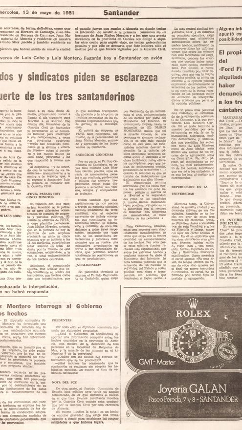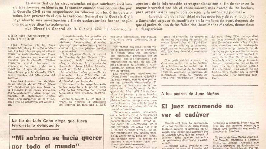 Vistas las trabas y enormes presiones sufridas por la acusación particular en el proceso judicial, se explica el perfil bajo que, salvo honrosas excepciones, adoptó la prensa con respecto al triple crimen. Tanto el Gobierno de UCD como los posteriores del PSOE utilizaron fondos reservados para pagar compensaciones a los guardias civiles condenados, dando naturaleza de estado al comportamiento terrorista aplicado a los jóvenes, por si hubiera alguna duda. Así las cosas, la calificación de los hechos como asesinato tarda en aparecer en los medios informativos y solo, tras la mayor y más variada oferta que suponen los medios digitales, se generaliza y consolida ese tratamiento.