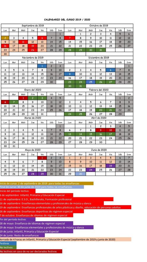 El calendario recoge un total de 175 horas lectivas, como pedían los sindicatos, y contempla jornada reducida en septiembre de 2019 y junio de 2020, pero de cuatro horas en Educación Infantil, Primaria y Especial.