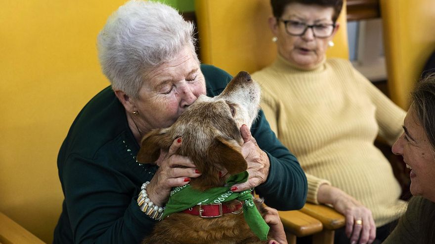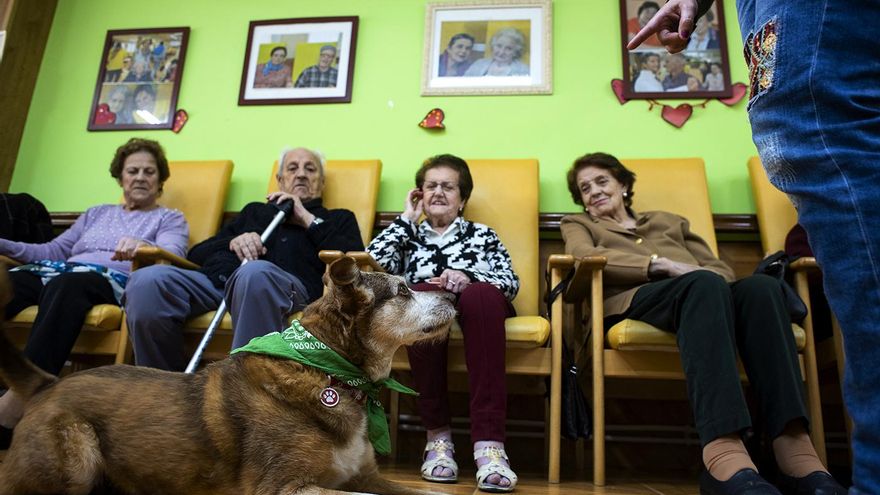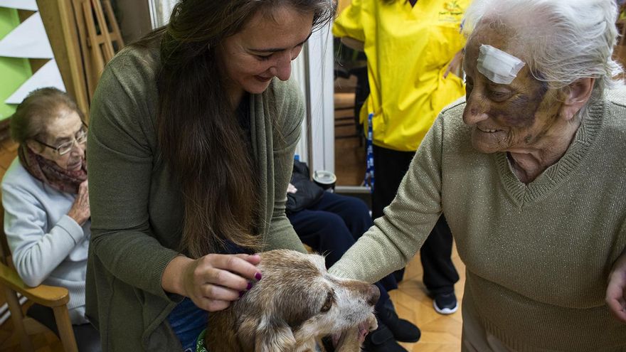 Las mascotas, poco a poco, están llegando también a hospitales, centros educativos o residencias de mayores, como es el caso de Miko, siempre acompañado de su dueña, eso sí. Este tándem 'humana-perro' lleva ya cinco años dedicando parte de su tiempo libre a estas visitas terapéuticas, una actividad que, según la dueña de Miko, Isabel García, es beneficiosa para todos: “Es cierto que la visita se programa para los mayores del centro como parte de sus actividades con el objetivo de proporcionarles un rato agradable, sacarles de la rutina, luchar contra la soledad… Pero también Miko y yo obtenemos beneficios: él se divierte con ellos, recibe mimos y premios -que le encantan- y yo aprendo siempre algo nuevo, tanto de los mayores como de mi perro, que es un gran maestro”.