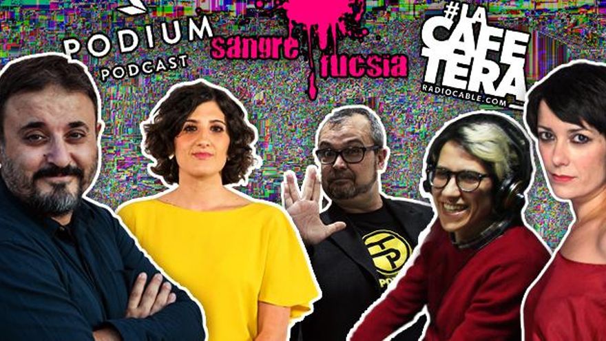 Charlamos con Fernando Berlín, director de La Cafetera, María Jesús Espinosa, jefa de Proyecto de Podium Podcast, Mona León, directora del podcast Negra y Criminal, Arturo González Campos, director de Los Todopoderosos, Antonio Martínez Ron, integrante del podcast Catástrofe Ultravioleta y Laura Gaelx del podcast feminista Sangre Fucsia.