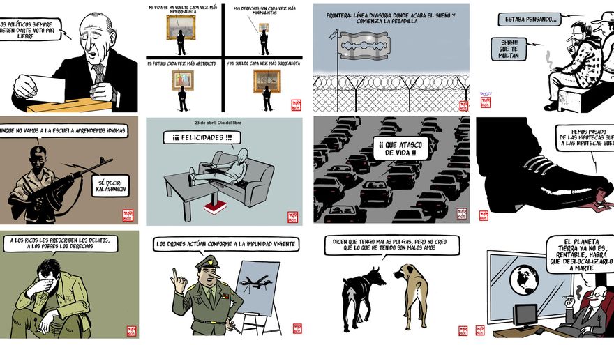 Entrevistamos al viñetista José Rubio “Malagón” con motivo de la exposición “Código Malagón” en la que recorre con sus viñetas diferentes temas de actualidad diaria: política, economía, cultura, inmigración, ecología, etc., analizando la sociedad de hoy en día, siempre con humor. Uno de los viñetistas referentes de nuestro país que trabaja desde imágenes más conceptuales e icónicas que se mezclan con viñetas de ácido humor, publicadas en los diferentes medios en los que se publica su trabajo.